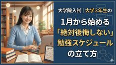 院試対策大学3年生の1月から始める院試準備ロードマップ|「今からでも間に合う」動き方と7日間プラン 「院試を受けたい気持ちはあるけれど、大学3年生の1月から動き出すのって遅い?」「まず何をすればいいのか分からないまま冬休みが終わりそう…」 そんなモヤモヤを抱えて、「院試 大学3年生 1月の動き方」のようなキーワードで検索している方に... 2026.01.06院試対策
